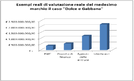 Nel caso degli accertamenti fiscali e dei giudizi promossi contro gli stilisti "Dolce & Gabbana" sono stati individuati ad esempio i seguenti valori per gli stessi marchi: